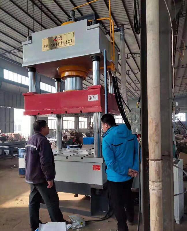 315噸三梁四柱液壓機客戶公司調試完畢。